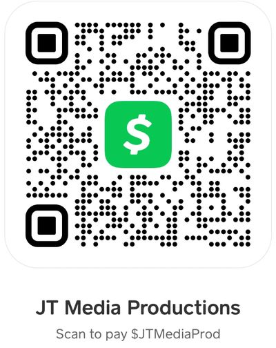 For swift payment access we have afforded you the opportunity to CashApp us by tapping the QR code, by scanning our CashTag, or by inputting your amount and paying to $JTMediaProd.